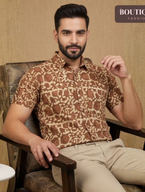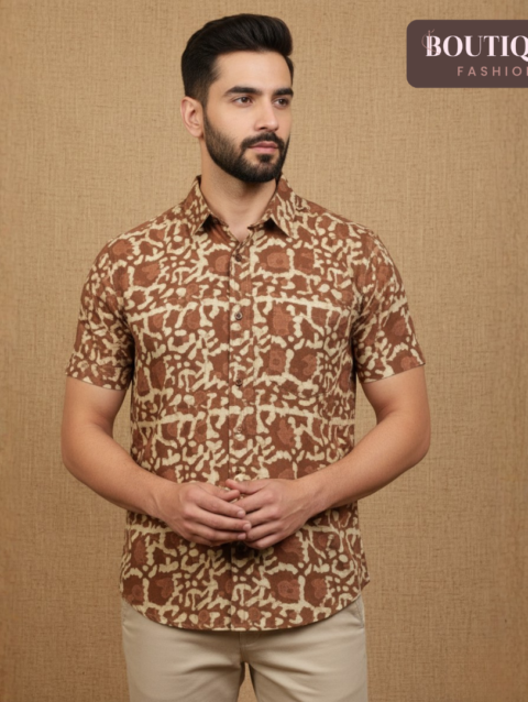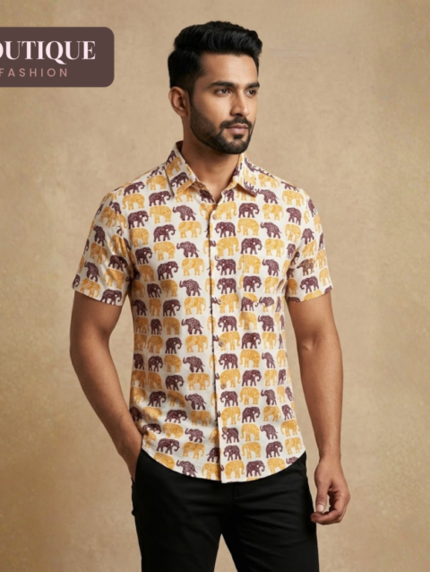 Handblock Fish Motif Men’s Shirt