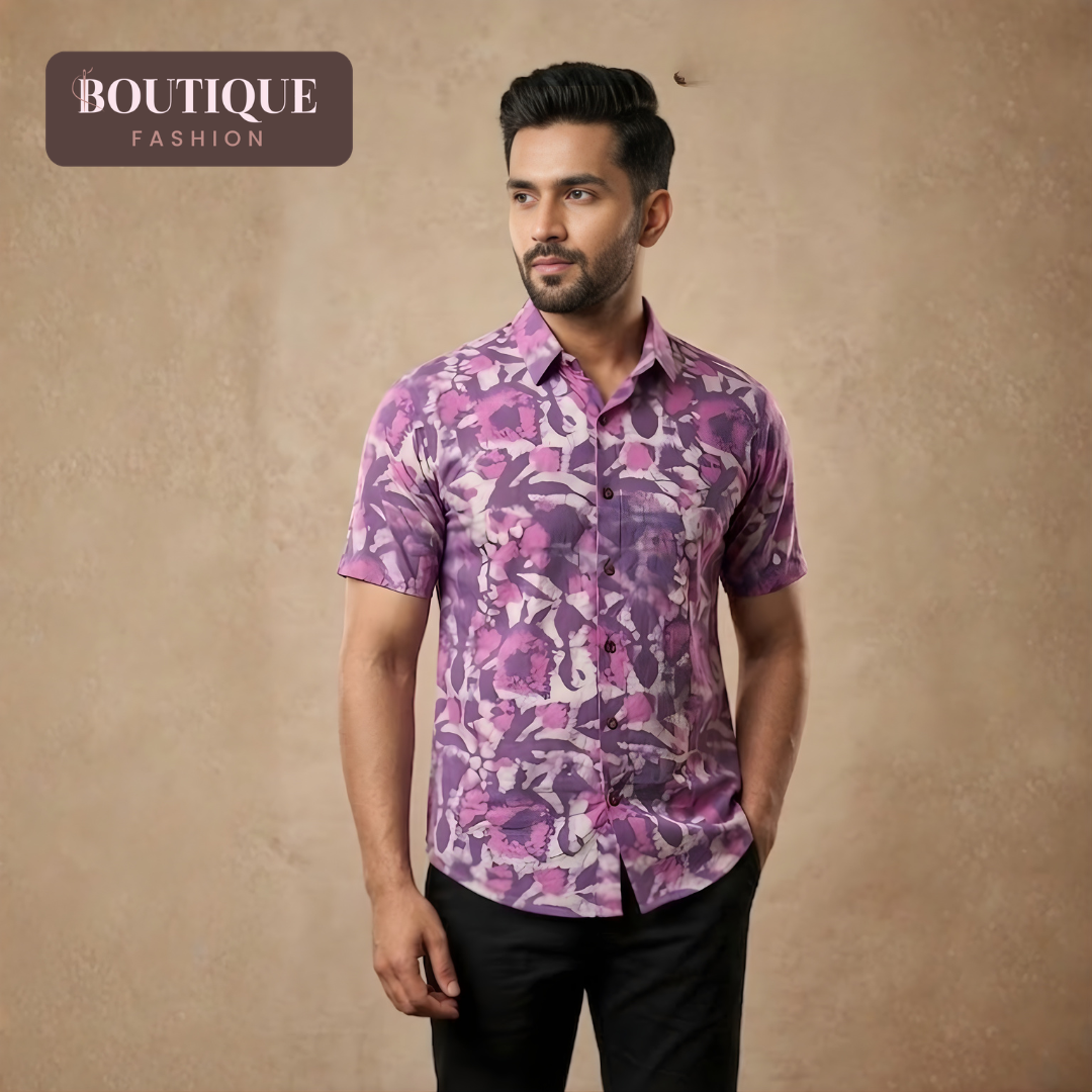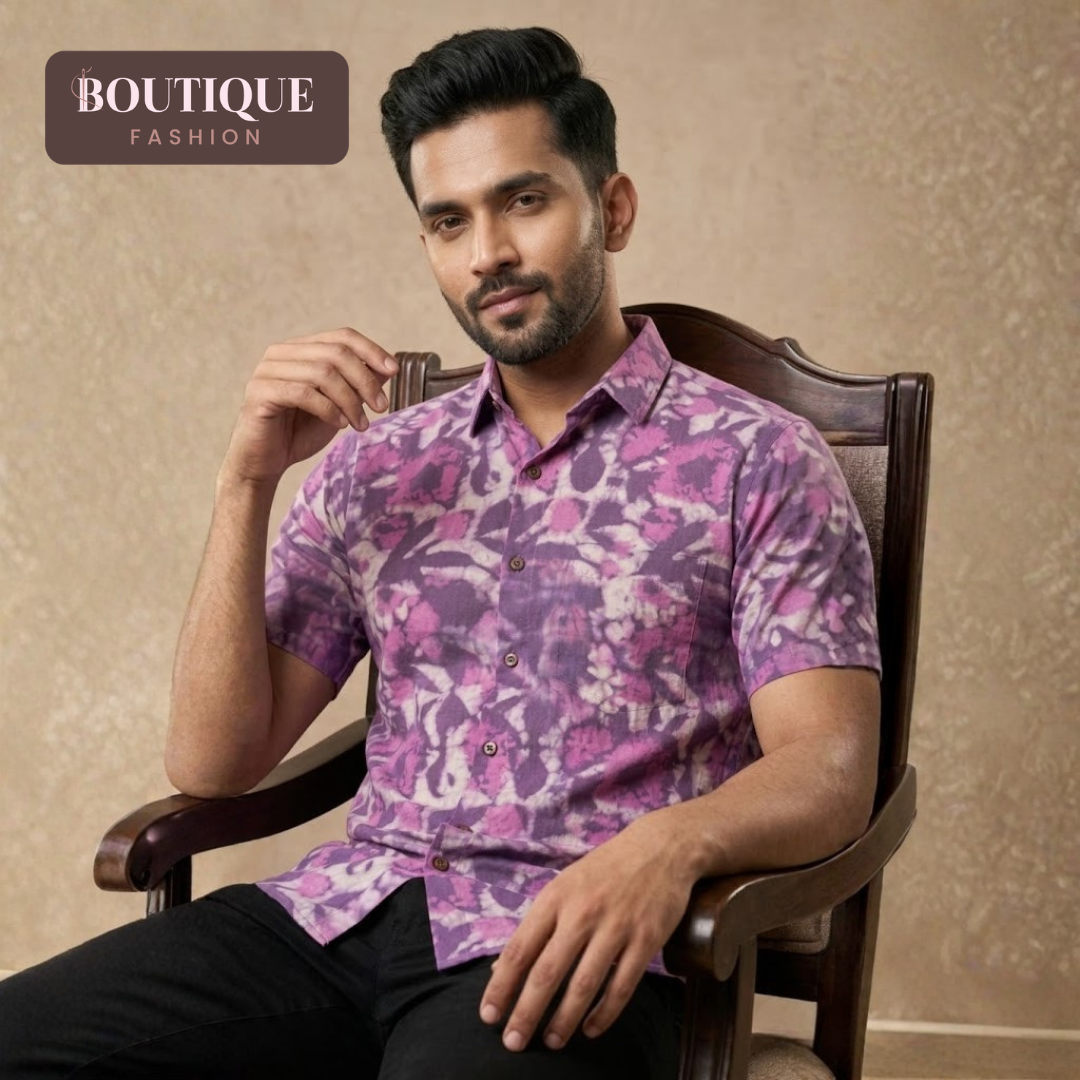 A stylish cotton Bagru handblock shirt in a soothing mauve shade, featuring traditional handcrafted prints. Soft, breathable, and comfortable, it is perfect for everyday wear with a touch of artisanal elegance.